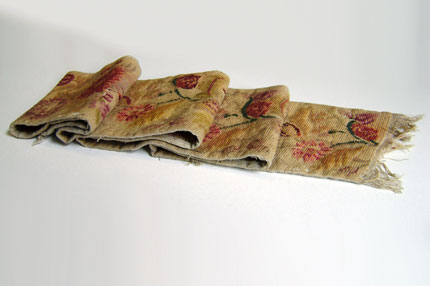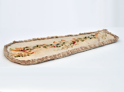 The towel which belonged to the Spendiaryans’ family was made at the end of 19th and the beginning of 20th centuaries in Sebastia-Marzvan /Central Anatoly/. There are the embroidery with silk thread, metal thread and brass on the cotton envelope.