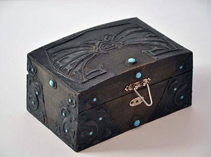 The casket is decorated with Turquoise. Composer used it for keeping photos and letters.