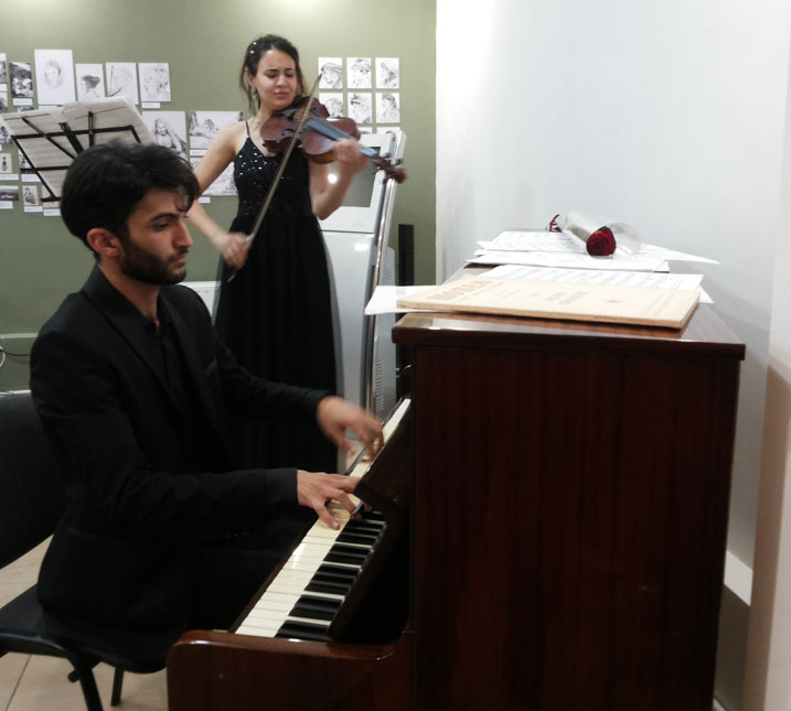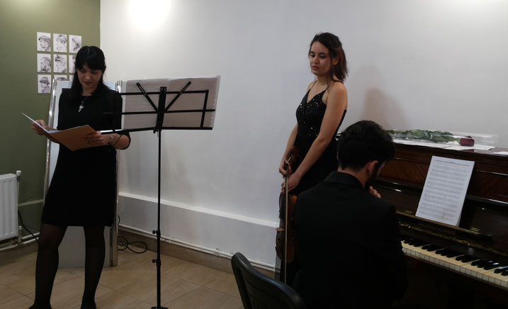 Several compositions of F. Chopin, P. Tchaikovsky, S. Rachmaninov, W. Weiner, C. Aznavour, and L. Sevoyan’s “Fantasy” for viola and piano as well were performed during the evening. The music was accompanied by conversation with participants and reading of L. Sevoyan’s poems.