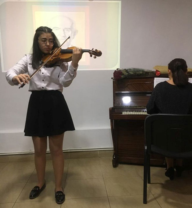 Several compositions of F. Chopin, P. Tchaikovsky, S. Rachmaninov, W. Weiner, C. Aznavour, and L. Sevoyan’s “Fantasy” for viola and piano as well were performed during the evening. The music was accompanied by conversation with participants and reading of L. Sevoyan’s poems.
