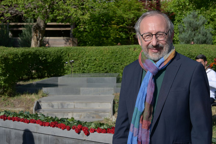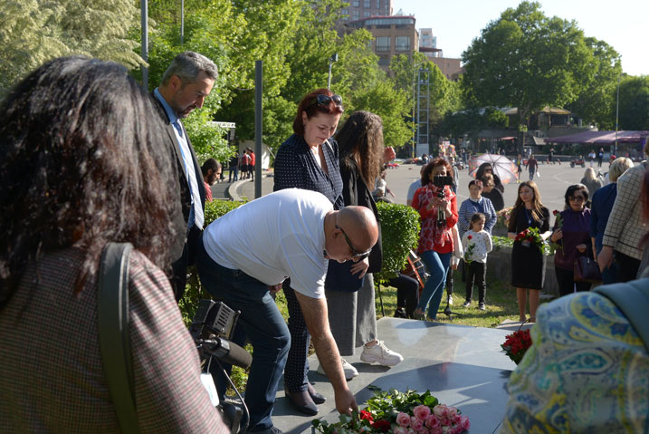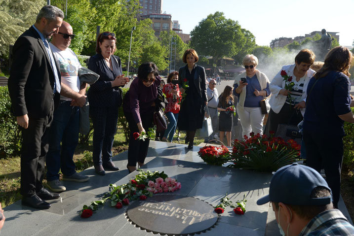 On May 11, on the occasion of the Memorial Day of the great Armenian composer Alexander Spendiaryan, many artists and the funs of Alexander Spendiaryan music laid flowers at composer’s grave. The director of Alexander Spendiaryan house-museum Marine Otaryan, reminded to journalists that on May 7, 1928 when Alexander Spendiaryan died, by the suggestion of composer’s friend Alexander Tamanyan decided to bury Spendiaryan’s body in the garden of the People’s House that should be built, which later became the opera and ballet house. The National Orchestra performed a little part from the Spendiaryan composition in the yard Opera and ballet theatre. It is said that “Tamanyan took care of the flowers himself and always tried to keep them fresh. We decided to restore that tradition with the help of intelligentsia, society and to plant roses at the grave of the composer” said Marine Otaryan. The rose planting took participation Tigran Mansurian, opera singer Hasmik Papyan, Armen Budaghyan and many famous people. The event took place under control of Ministry of Culture with the Alexander Spendiaryan House-museum.