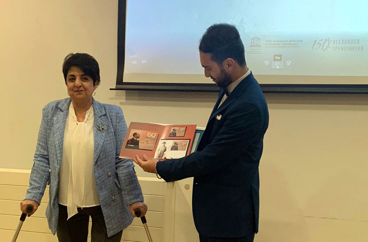 Director of Alexander Spendiaryan House-Museum Marine Otaryan presented Alexander Spendiaryan’s life and activity and the artistic director of Klingen Choir and the Klingen Chamber Orchestra Sipan Olah made a presentation of Arno Babajanyan’s life activity. Ա. The director of the Spendiaryan House-museum presented a Letter of appreciation to Sipan Olah for organizing and actively participating the Jubilee events dedicated to the great Armenian composer.
