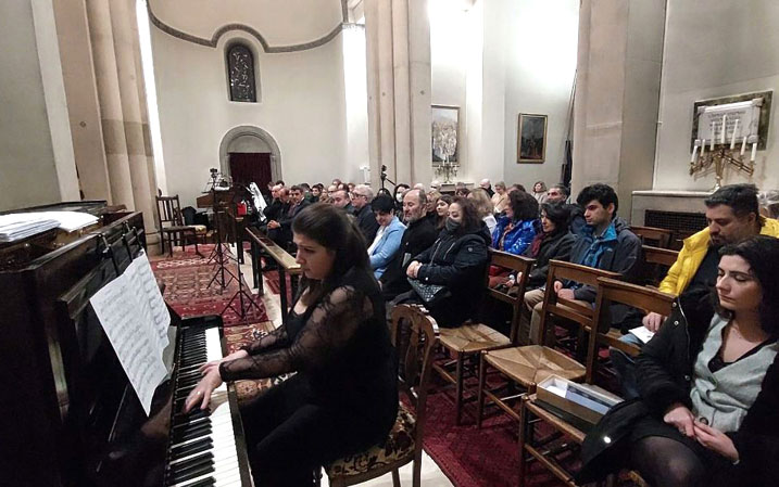 After the lecture, the composers' works were performed by Klingen Choir and the Klingen String Quartet under the direction of artistic director and conductor Sipan Olah. Soloists Sipan Olah (conductor, tenor & pianist) sopranos Tatevik Ashuryan and Hayarpi Yeghikyan, pianist Maria Palazian, oboist Jack Mouradian, violinists Paula Izabella Gorbaņova and Malena Benavent, violist Adrián Morena Tierraseca and cellist Chris Hedges performed immortal music by great composers.