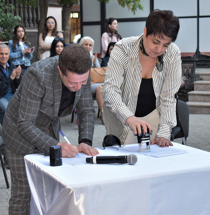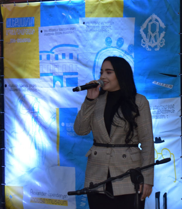 The participants of the event were the vocal soloists and folk ensembles - the students of the Yerevan Music School named after M. Mirzoyan, State Musical Pedagogical College after A. Babajanyan, State College of Culture and Arts named after C. Aznavour and Komitas State Conservatory Chair of Jazz/Pop music. The concert was dedicated to the 120th birth anniversary of Artemi Ayvazyan - the founder of the Armenian Jazz music and the student of Alexander Spendiaryan. The program included Armenian folk music and favorite Jazz-pop compositions by the Armenian composers. During the concert the directors of the House-museum and the College of Culture - Marine Otaryan and Vrej Kirakosyan signed a Memorandum of Cooperation between this two institutions.