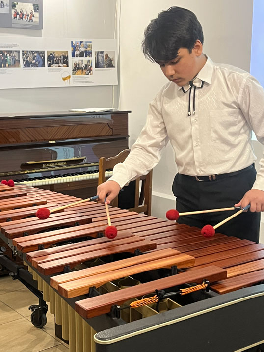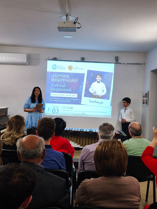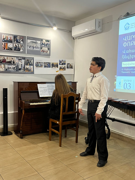 During the event, Vahagn performed works by M. de Falla, J. Brahms, N. Zivkovic, A. Vivaldi, and A. Khachaturian on the marimba. He also showcased his vocal talents by singing R. Falvo’s "Say I Want To." Lusine Baghramyan accompanied him.