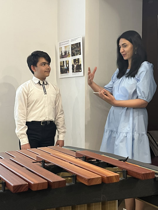 On May 3, the Alexander Spendiaryan House-Museum welcomed the latest participant of the "Children-Masters 2025" project — 13-year-old Vahagn Yengibaryan, a student at the Alexey Heqimyan Music School. Vahagn studies under the guidance of Hayk Hakobyan and plays the marimba as well as nearly all percussion instruments. In addition, he pursues trumpet, vocal, and composition studies at the school. He is a laureate of numerous competitions and festivals.