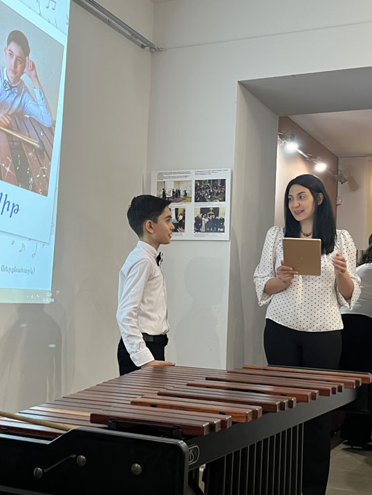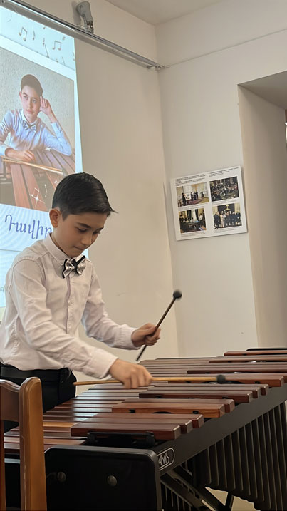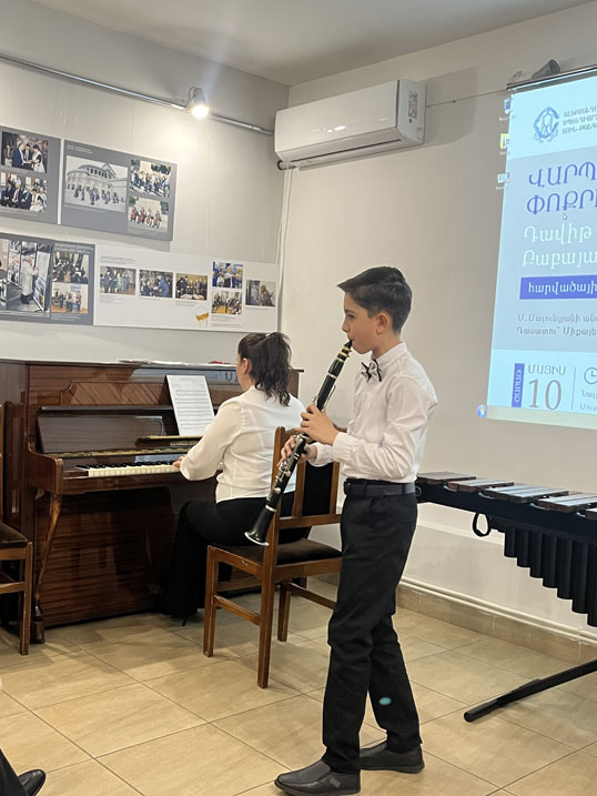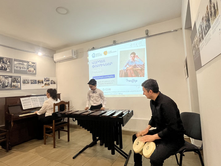 On May 10, at the Alexander Spendiaryan House-Museum, the next participant of the "Children Masters 2025" project was Davit Babayan, a student of the M. Maluntsyan Art School. Davit plays the marimba (teacher: M. Gulikekhvayev) and nearly all percussion instruments. He also studies in the school's clarinet and guitar departments. He is a laureate of several competitions and festivals. Davit performed works by A. Spendiaryan, V. Monti, I. Albéniz, Z. de Abreu, J. Sibelius, and A. Khachaturian on the marimba. During the concert, he also performed as a member of the M. Maluntsyan Art School classical ensemble, led by E. Ayvazyan. On the clarinet, Davit performed "Nadir's Aria" from Georges Bizet's opera The Pearl Fishers.