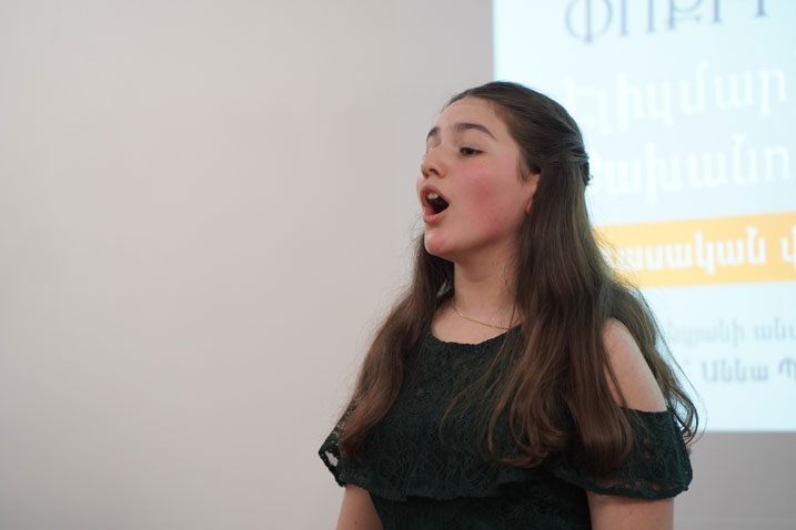 The concert-meeting featured works by J. Althouse, C. Franck, W. A. Mozart, F. Obradors, H. Perperyan, M. Sandoval, Sayat-Nova, and A. Valesyan. Elizmarie was accompanied by Margarit Sargsyan and Margarita Grigoryan. A laureate of both national and international competitions, Elizmarie is currently preparing for new performances and contests.