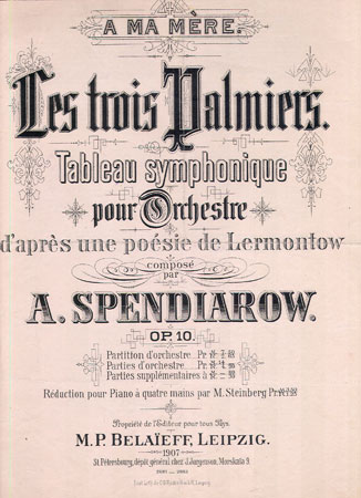 The first edition of symphonic poem ''The Three Palm Trees'' (Leipzig, 1907)